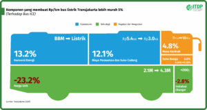 Komponen yang membuat Rp per km bus listrik Transjakarta lebih murah