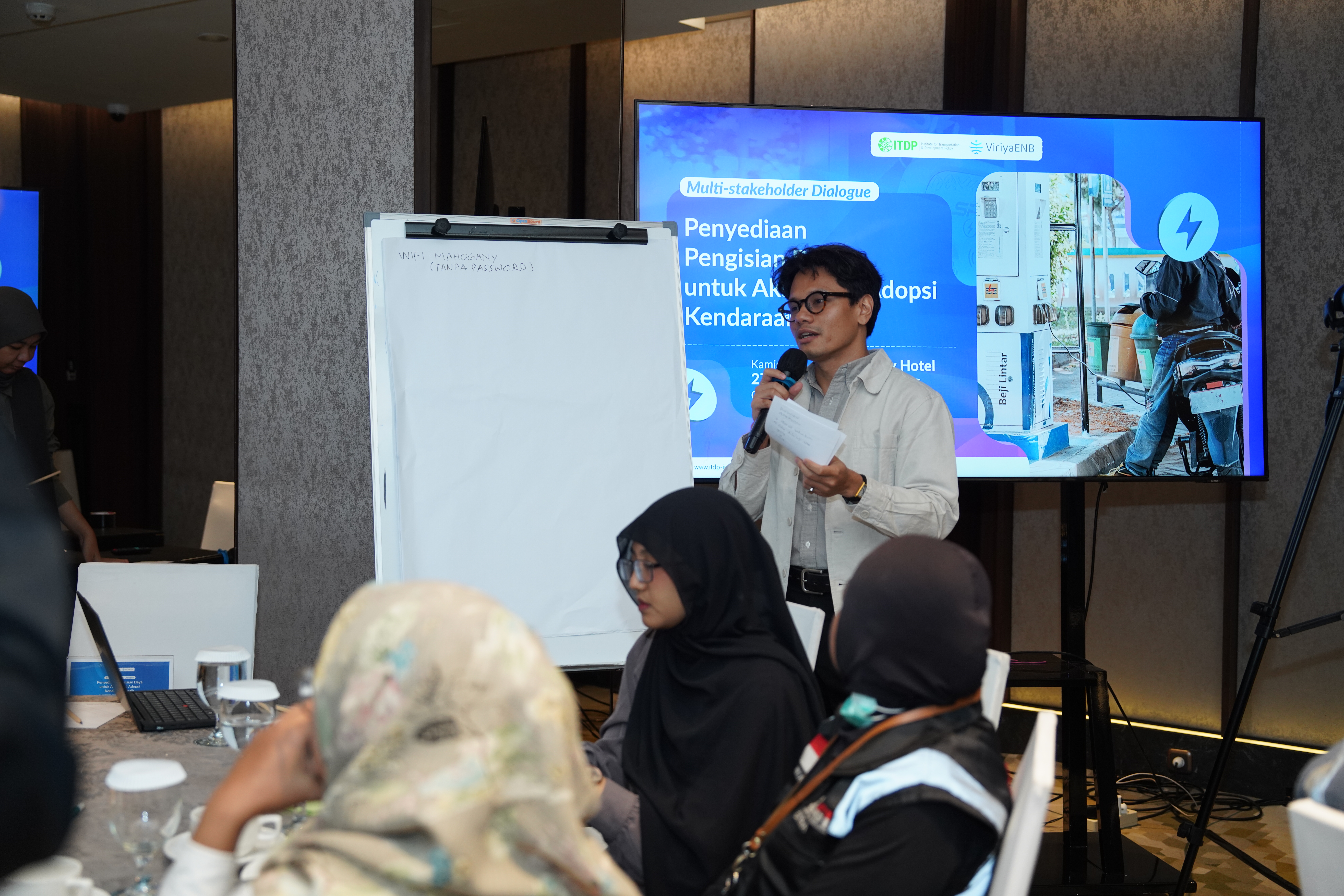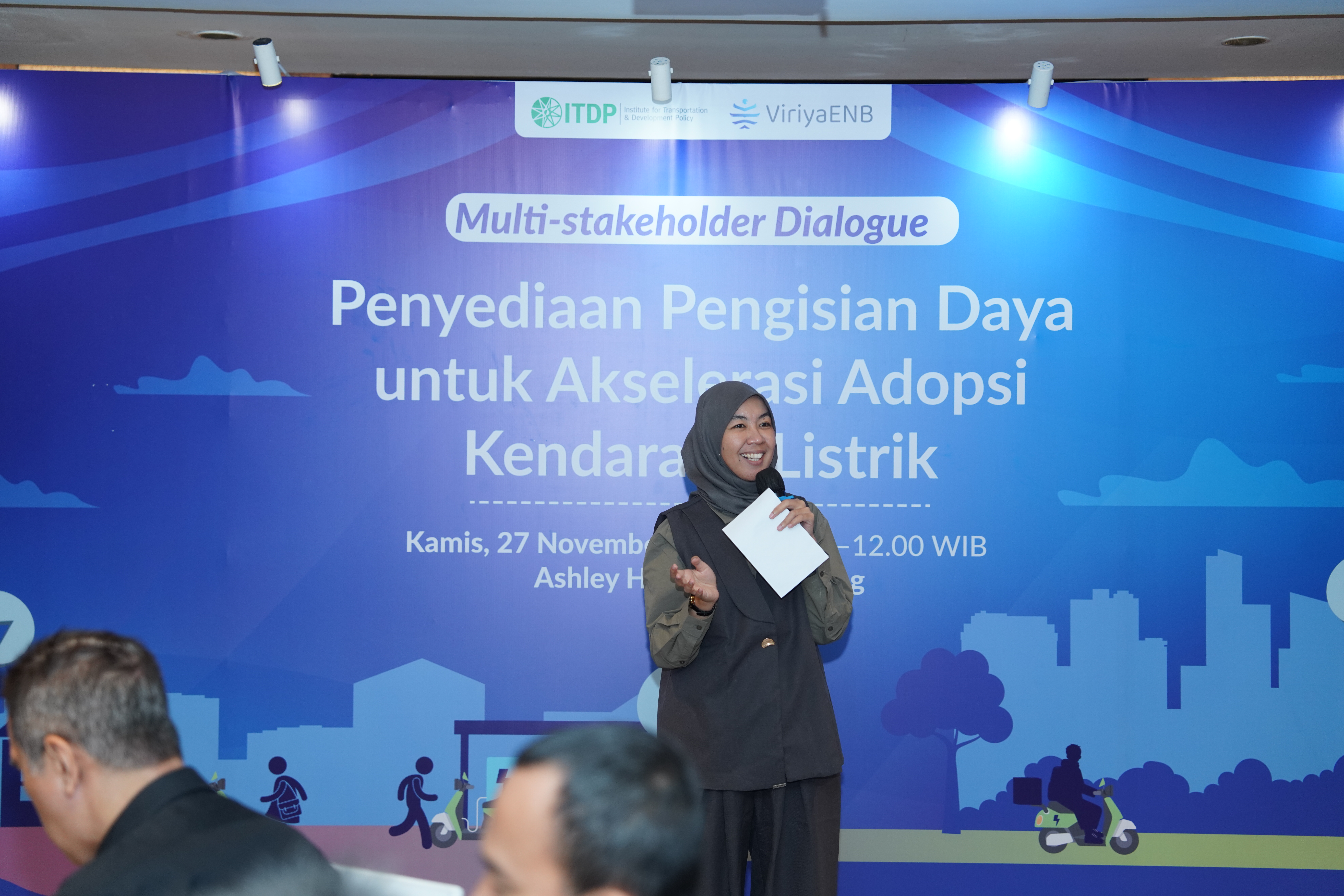 ITDP Indonesia, didukung oleh ViriyaENB, menyelenggarakan Multistakeholder Dialogue “Strategi Penyediaan Pengisian Daya Inklusif dan Berkelanjutan untuk Kendaraan Listrik di Indonesia” pada 27 November 2025 di Ashley Hotel, Tanah Abang, Jakarta. Kegiatan ini merupakan tindak lanjut dari hasil survei ITDP terhadap 1.920 responden di empat kota metropolitan, yang menunjukkan bahwa 78% masyarakat masih ragu akan ketersediaan infrastruktur pengisian publik, sementara 80% belum yakin dapat melakukan pengisian di rumah.